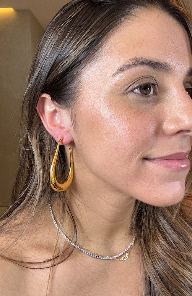• Unique exaggerated pear shape hollow hoop earrings