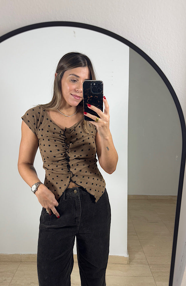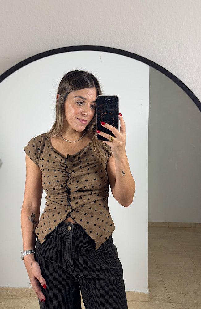 Round neckline polka dots top